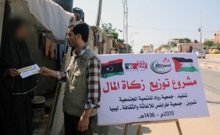 بدعم من مؤسسة طرابلس للإغاثة والثقافة بجمهورية ليبيا، وزعت جمعية روّاد للتنمية المجتمعية زكاة المال على الأسر الفقيرة والمستورة بمدينة غزة.