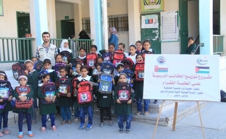 From Generous donations from Omani initiative, Rowad distributes school bags to the poor students