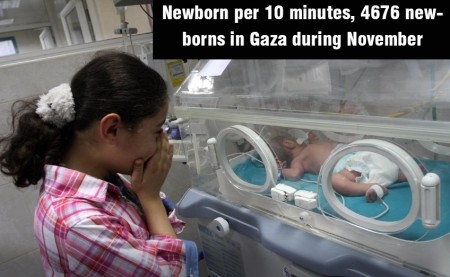 The Gaza Strip has witnessed the birth of 4676 newborn during the last November with an average of 156 newborn per day which means there is a newborn each 10 minutes.