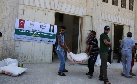 Rowad Society for Social Development distributed hundreds of food aid form the Turkish convey “Lady Leila" to the poor families under supervision of the Palestinian Ministry of Social Affairs.