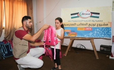 Rowad distributes school bags to poor students in Gaza