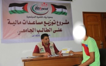 Within its seasonable projects, "Rowad" distributes financial aids to the poor students in Gaza