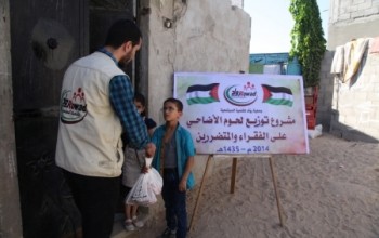 For the Gaza Strip, "Rowad" distributes the meat of Adha Eid to thousands of poor families