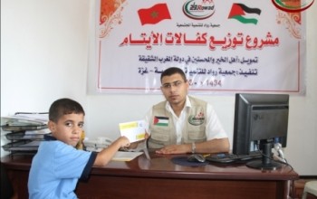 As a part of its regular projects, Rowad distribute sponsorships orphans in Gaza City