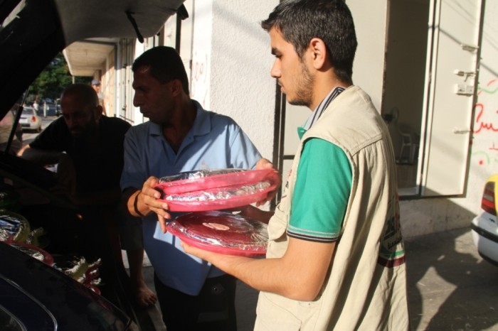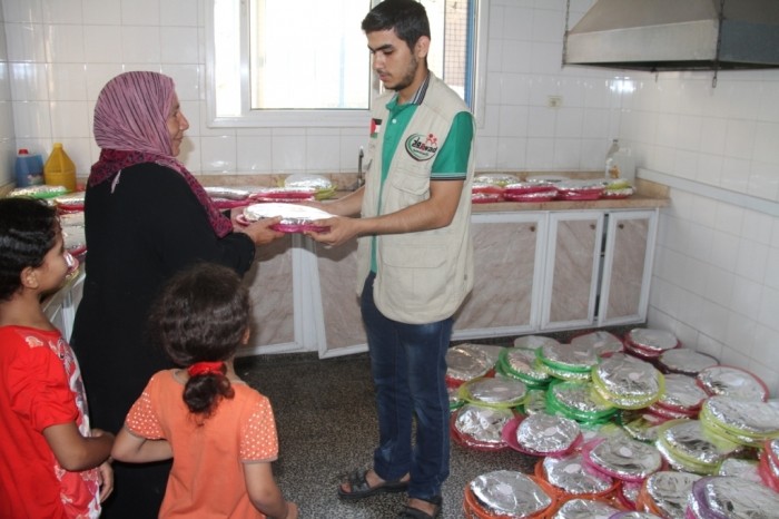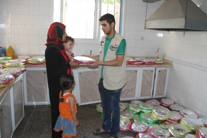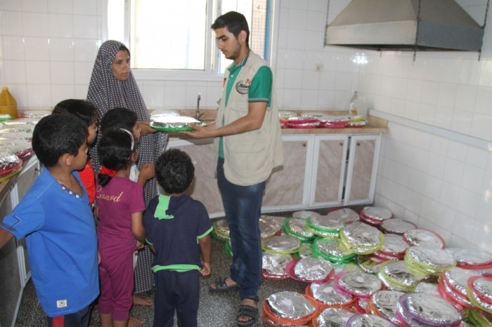 في هذه الظروف المؤلمة، روّاد توزع مئات وجبات الإفطار على النازحين في أماكن الإيواء