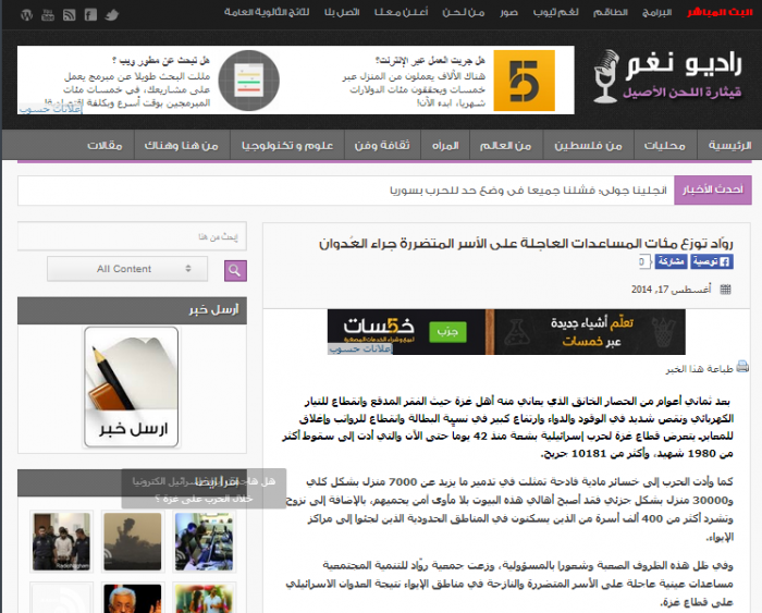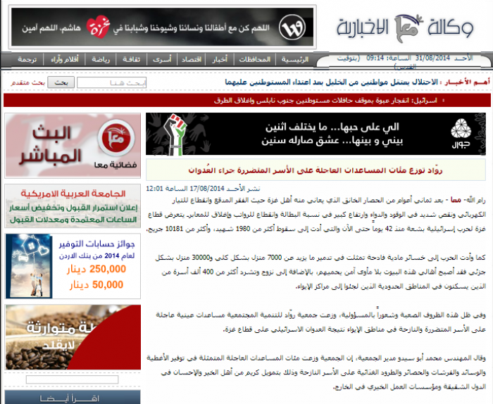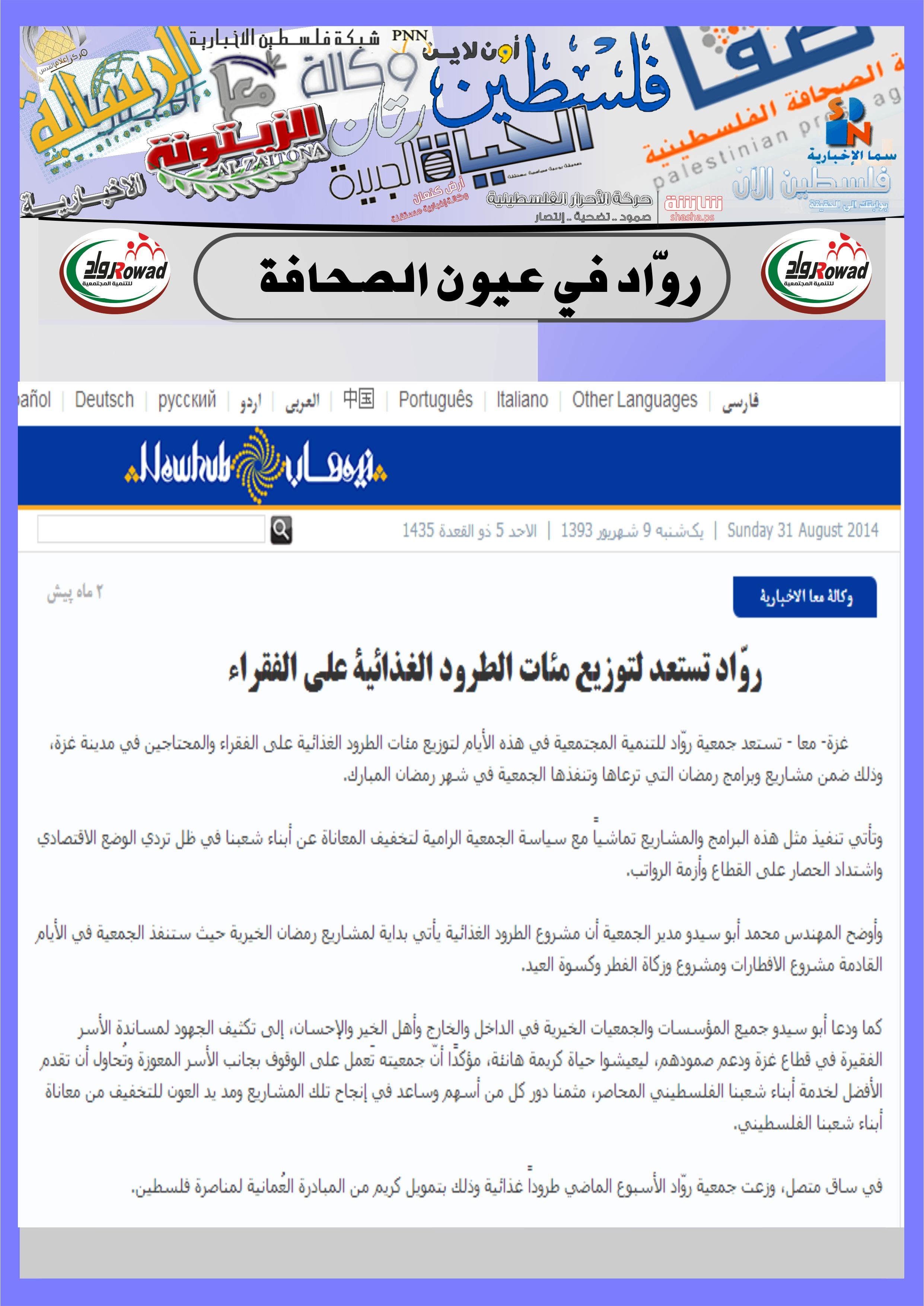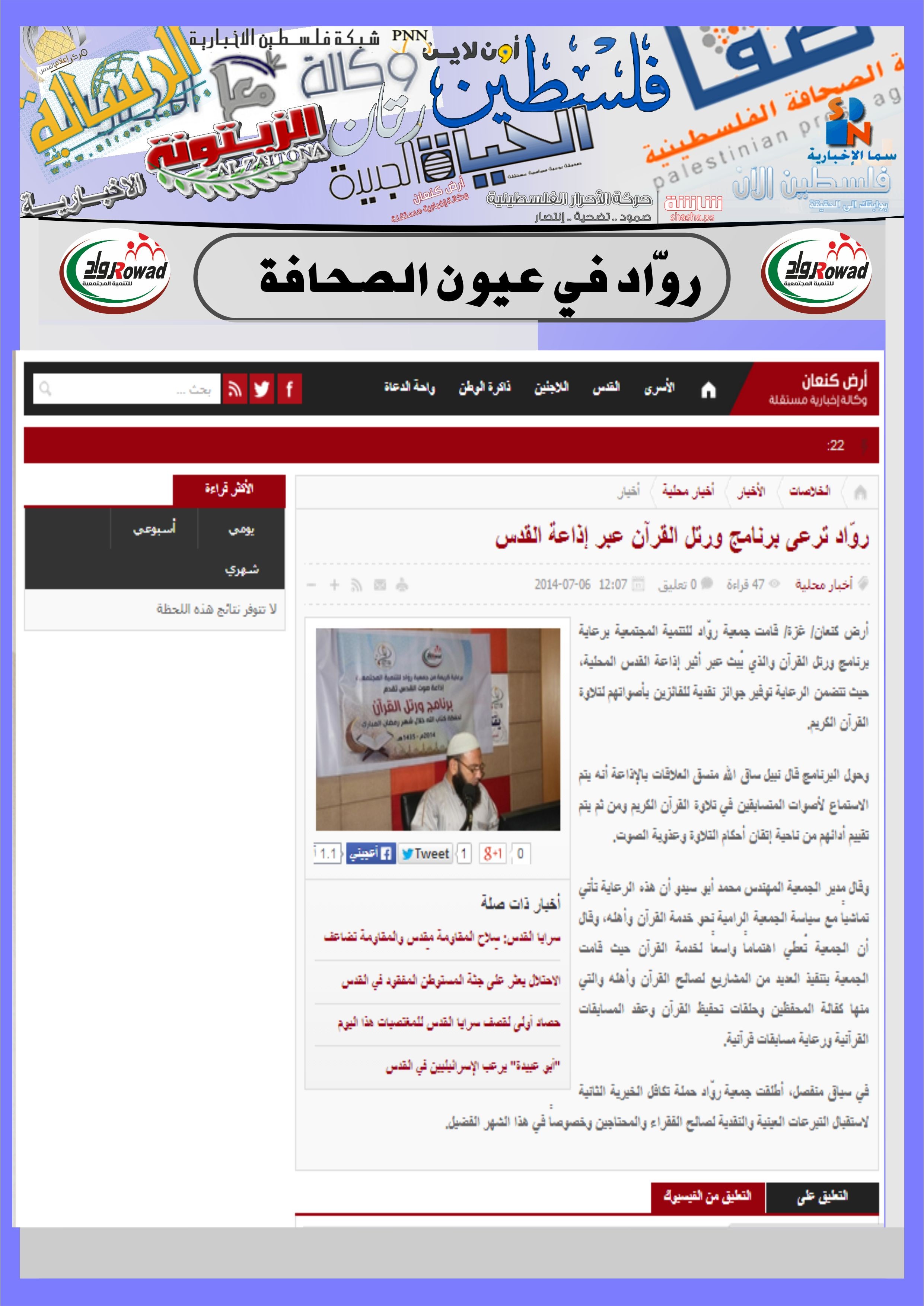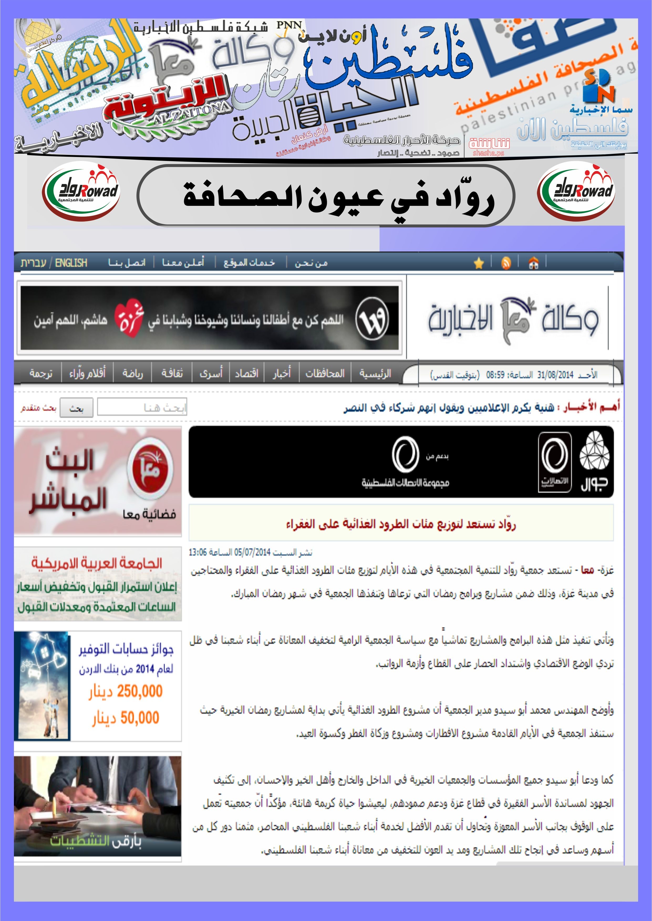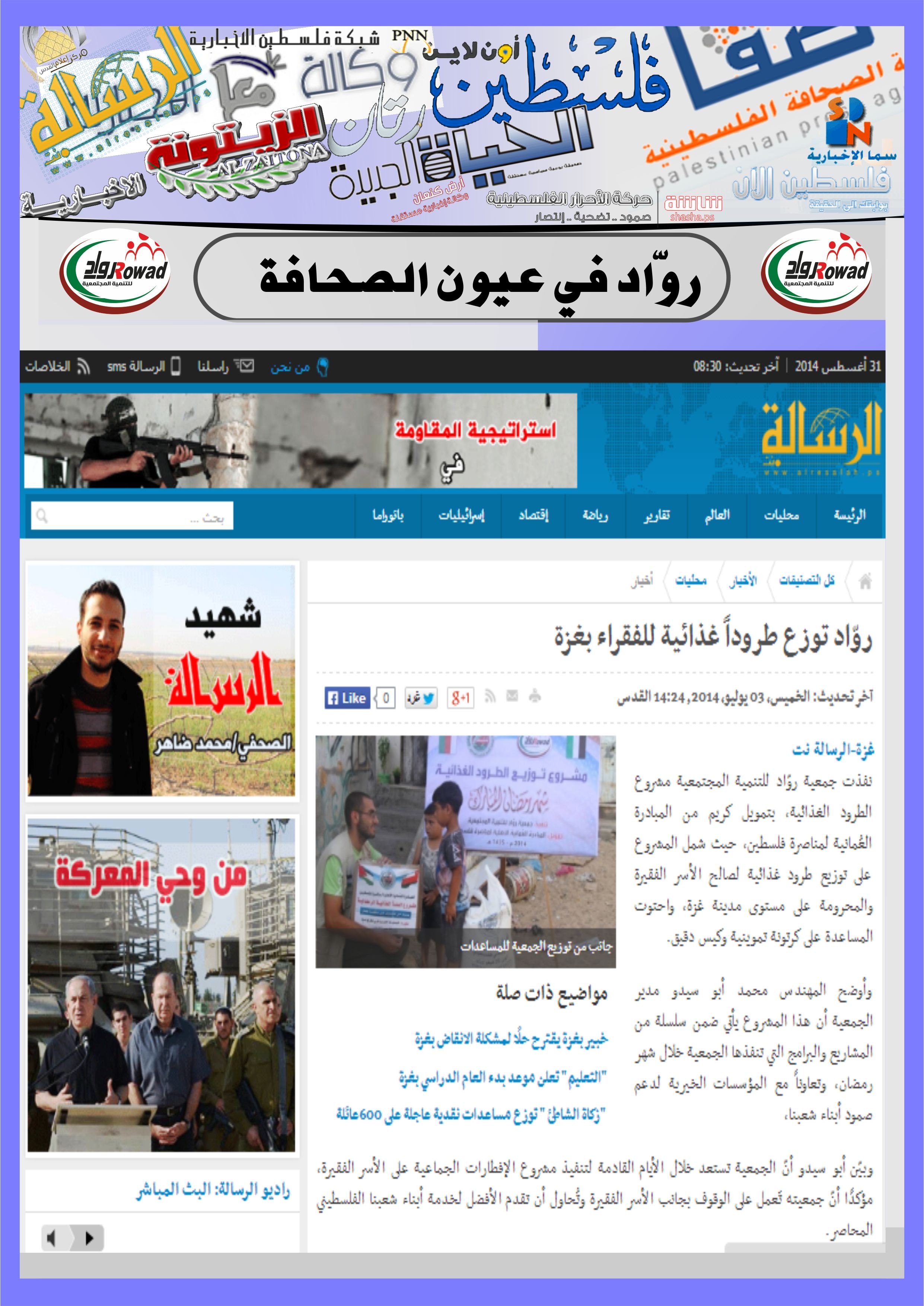رصد إخباري في وسائل الإعلام لبعض نشاطات "روّاد" خلال الحرب على غزة