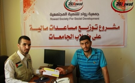 Rowad Association for Community Development has finished distributingcash assistance to the poor undergraduate students of in Gaza City, where the project included the distribution of one hundred dollars for each student in order to participate in covering their university fees of them.