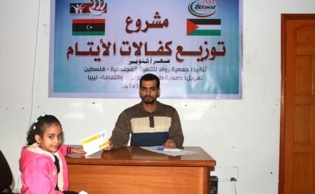 With a funding of Tripoli Association, Libya, "Rowad" distribute guarantees orphans in Gaza City.