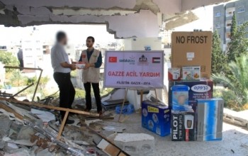 With donations from The Turkish SadaqaTashi Institution, "Rowad" distributes in-kind aids to the persons whose houses were damaged