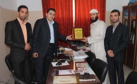 وفي نهاية اللقاء قدمت جمعية روّاد درع شكر وعرفان لجمعية ابن باز الخيرية، لجهودهم المتواصلة والكريمة في خدمة أبناء الشعب الفلسطيني.