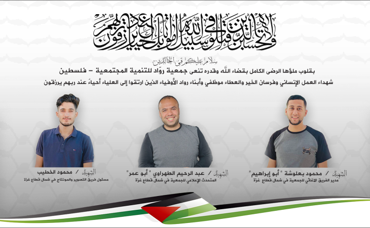 جمعية روّاد تنعى شهدائها للعمل الإنساني في قطاع غزة