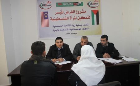 ضمن مشروع القرض المُيّسر لتمكين المرأة الفلسطينية التي ترعاه تنفذه الجمعية بدعم كريم من مؤسسة فيفا فلسطينا ماليزيا ومؤسسة جلوبل بيس الماليزية، انتهت جمعية روّاد للتنمية المجتمعية الأسبوع المنصرم من تنفيذ مقابلات شخصية للسيدات المعيلات المتقدمات للإستفادة من مشروع القرض الميسر لتمويل المشاريع التنموية الصغيرة.