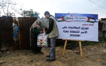 روّاد توزع بطانيات على الاسر المستورة بغزة