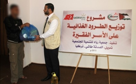 في ظل هذه الظروف المريرة والصعبة وشعوراً بالمسؤولية الملقاة على عاتق الجمعية، قامت جمعية روّاد للتنمية المجتمعية بتوزيع طرود غذائية على الأسر الفقيرة والمعدومة في مدينة غزة وذلك بدعم كريم من مؤسسة الصدقة طاشي التركية