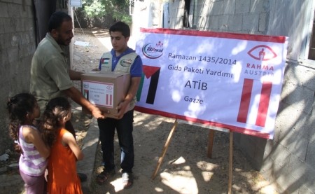 بدعم من جمعية الرحمة بالنمسا، روّاد توزع مئات الطرود الغذائية على فقراء غزة