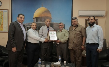 وفي ختام الزيارة قام وفد الجمعية بتقديم درع الشكر والعرفان لوكيل الوزارة وذلك لمساهمته الفاعلة في خدمة أبناء الشعب الفلسطيني، لاسيما تخصيص حُصة من مساعدات سفينة "أكوا ستيلا" التركية