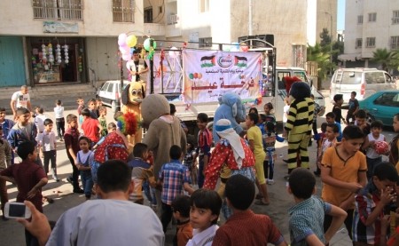 نفذت جمعية روّاد للتنمية المجتمعية أول أيام عيد الأضحى المبارك "مشروع فرحة عيد" ، وذلك بعد صلاة العيد مباشرة في منطقة شمال غرب غزة، حيث تضمنت الفعالية عقد مسابقات وألعاب ترفيهية بمشاركة مهرجين الذين قاموا بأداء حركات بهلوانية ومضحة أمام الاطفال مع النشيد العذب وفي الختام توزيع الحلوى على الاطفال.