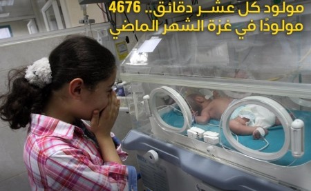 شهد قطاع غزة ولادة 4676 مولوداً جديداً خلال شهر تشرين ثاني الماضي، بمعدل 156 مولوداً يومياً، ما يعني أن هناك “مولودًا كل عشر دقائق”.