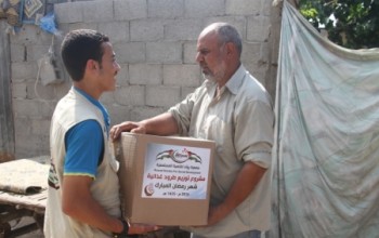 في هذه الظروف الصعبة، روّاد توزع مئات الطرود الغذائية على الفقراء في غزة
