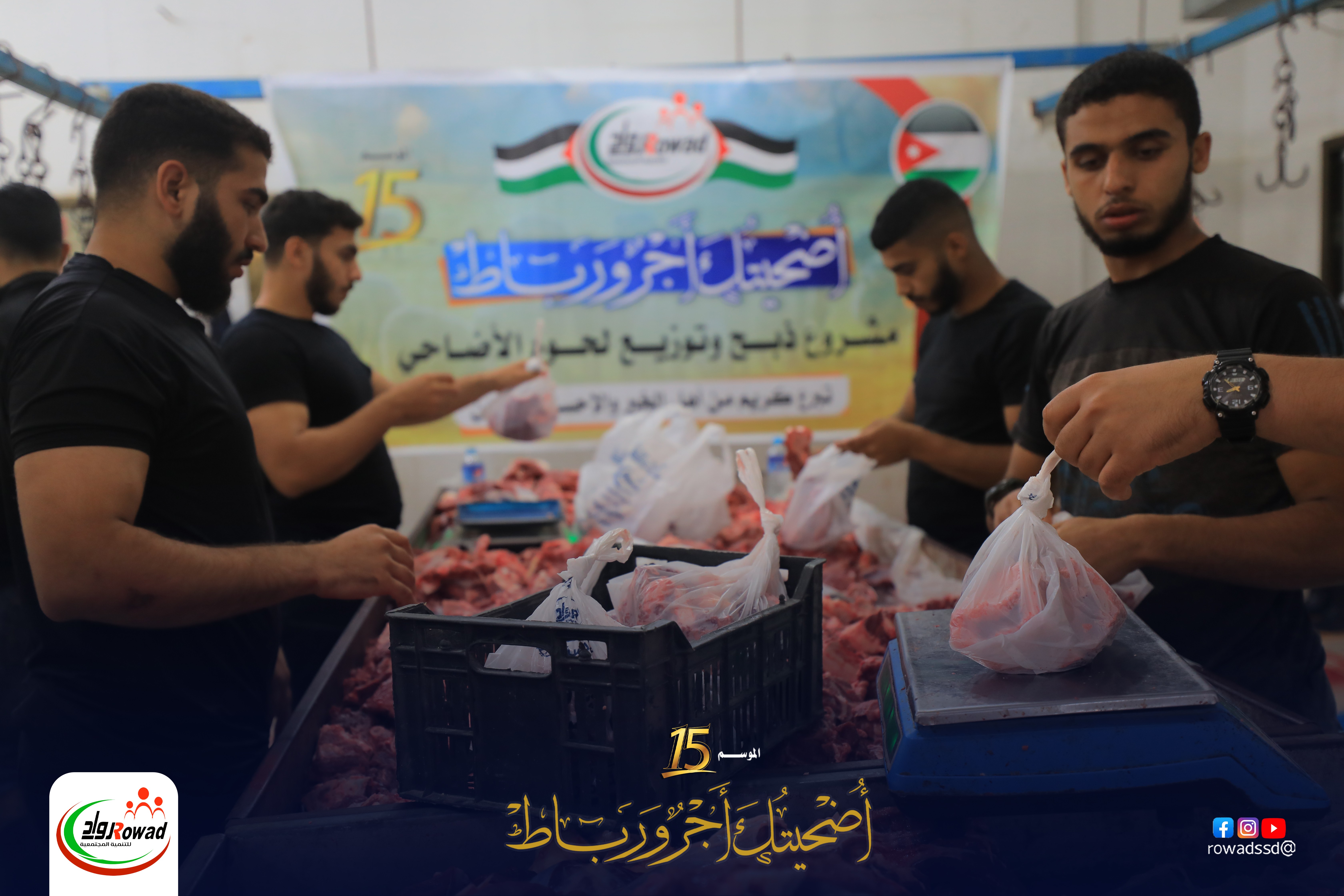 أثناء قيام فريق رواد بتجهيز وتوزين وتبكيت لحوم الأضاحي إستعداداً لتوزيعها على الفقراء والمحتاجين خلال أيام عيد الأضحى المبارك. #أضاحيكم_وصلت .. شكراً لكم ❤️