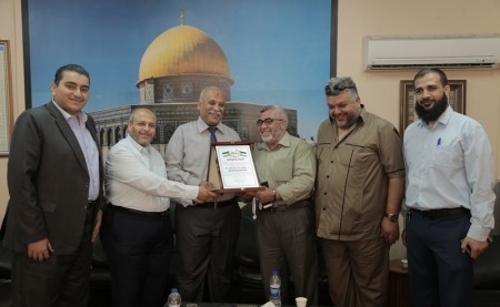 At the end of the visit, the delegation of Rowad presented a shield of honor and gratitude to the Deputy of the Ministry for his active contribution in serving the Palestinian people, in particular the allocation of a share of the aid of "Aqua Stella" Turkish ship.