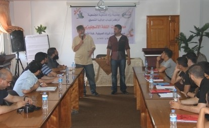 This lecture comes as part of the meetings and practical activities related to English language training that aims to refine the capacity of young people in speaking and listening skills. In his lecture, Mr. Cormier talked to the trainees about his academic and professional experience as a blogger as well as his work in the field of human rights in the US. During his speech, he tackled the tragic and painful situation in Gaza, saying the unbearable situation in Gaza is full of difficulties and hardships, nevertheless, we find in the hearts of people perseverance and challenge to realize their legitimate rights. Cormier added “I am very proud of the spirit and high morale of the young people and their outstanding performance despite the obstacles, repeated closures of crossings and the suffocating siege”.