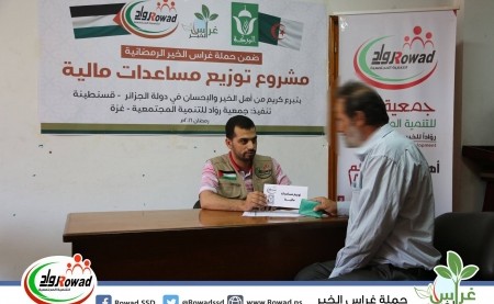 Rowad Society for Social Development started distributing hundreds of financial aid to the poor families in Gaza within Goodness Grass campaign of Ramadan. This project is funded by the Algerian society “Albarakah” and good people in Constantine province.