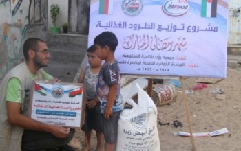 Funded by Ar- Rahma Society, Rowad distributes food parcels on the poor in Gaza City