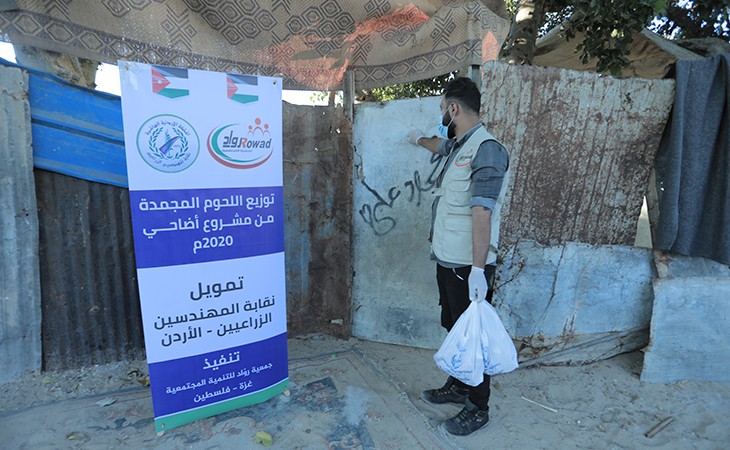 بتمويل كريم من نقابة المهندسين الزراعيين بالأردن، وزعت جمعية روّاد للتنمية المجتمعية - فلسطين اللحوم المجمدة على مئات الأسر المستحقة بمدينة غزة، وذلك في إطار واجب الجمعية الأخلاقي وسعيها لتخفيف الأعباء الاقتصادية عن الأسر الفقيرة في ظل الوضع الاقتصادي المتدهور، والحفاظ على الكرامة الإنسانية.