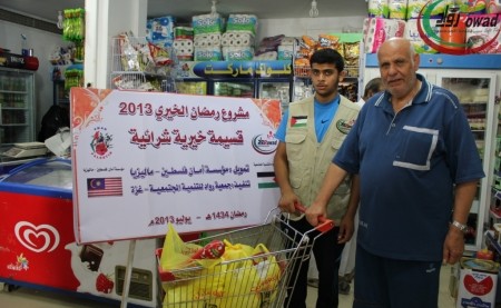 بدعم من مؤسسة أمان فلسطين ماليزيا، روّاد توزع قسائم شرائية على الفقراء