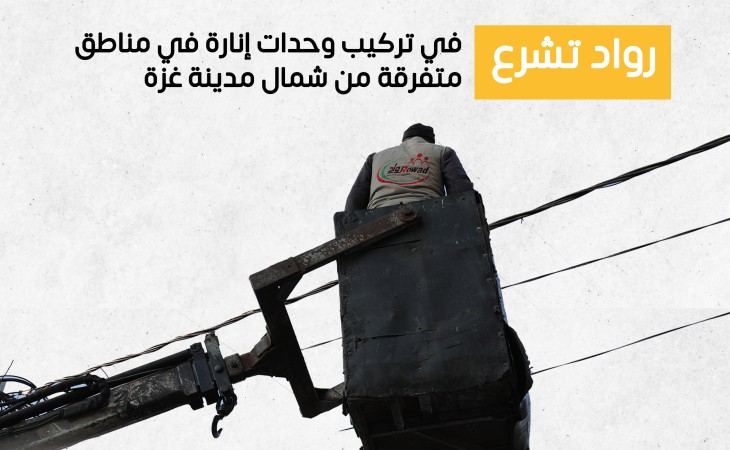 رواد تشرع في تركيب وحدات إنارة في مناطق متفرقة من شمال مدينة غزة