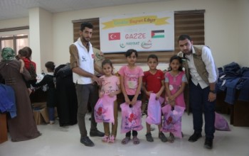 "روّاد" توزع الحقائب المدرسية بمدرسة سخنين شمال القطاع