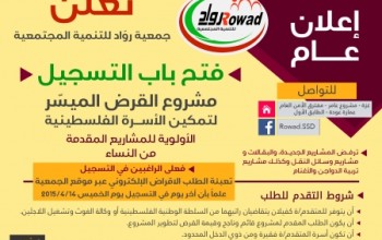 ضمن مشروع القرض الحسن لتمكين الأسر الفلسطينية والمُمَول من مؤسسة فيفا فلسطينا -ماليزيا، وزعت جمعية روّاد للتنمية المجتمعية ش ...