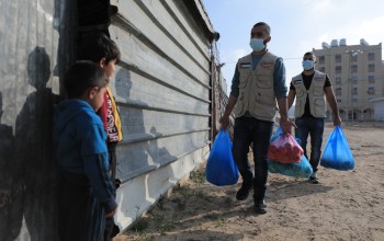 رواد توزع مئات الطرود الغذائية على الفقراء في قطاع غزة